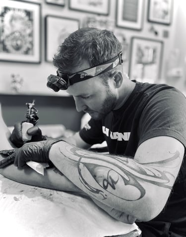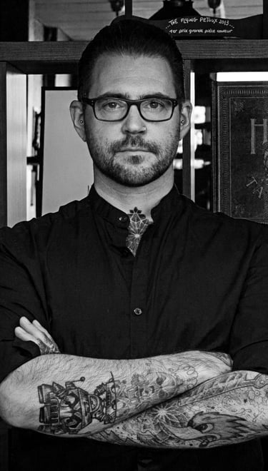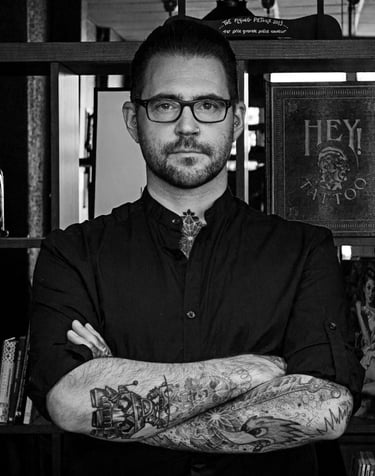 Bruno, connu sous le nom de Monsieur No, est un tatoueur originaire de Sierentz, qui a commencé sa carrière en 1999 à Mulhouse. Au fil des ans, il a perfectionné sa technique et a développé un style graphique, géométrique, dotwork et floral. En 2012, il a ouvert son premier shop, Sorry Mama, à Lille, en collaboration avec son apprenti de l'époque. Le succès du studio a été immédiat et continue à prospérer pendant trois ans.